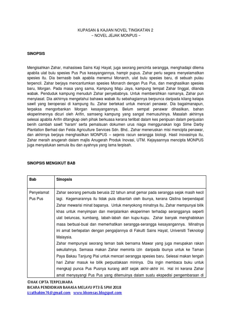 NOVEL TINGKATAN 2 JEJAK MONPUS Latar Masyarakat. Novel ini membawa tema hasil inovasi sains dapat membantu kehidupan manusia. Soalan Novel Jejak Monpus Tingkatan 2 2016.